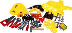 De la ciocan la fierăstrău și până la roți dințate – 85 de piese inclusiv șuruburi, piulițe și plăcuțe de lucru pentru înșurubare și construcție fără sfârșit.