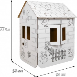 Căsuța se asamblează rapid fără unelte. Cartonul ușor este sigur pentru copii și se transportă și depozitează cu ușurință.