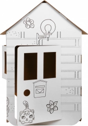 Descoperiți căsuța spațioasă din carton XXL, pe care copiii o pot asambla singuri și o pot decora după propriile idei. Suprafețele albe curate, cu contururi negre ale cailor și ale naturii, invită la colorat cu creioane, markere sau creioane cerate (accesoriile nu sunt incluse).