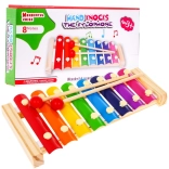 | Cinelele din lemn, sigure, sunt o idee perfectă pentru primul instrument al copilului tău. Jucăria este potrivită pentru copii de la 3 ani. Cinelele sunt realizate din materiale sigure pentru copii, baza din lemn a instrumentului nu are margini ascuțite, plăcuțele metalice sunt vopsite cu culori sigure, iar bețele sunt din lemn. Această jucărie educativă și muzicală învață și distrează în același timp, introducând copilul în lumea muzicii, ajutând la recunoașterea sunetelor și a simțului ritmului, stimulând creativitatea și îmbunătățind concentrarea. | |