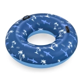 Colacul gonflabil BESTWAY cu motiv tropical de rechini și palmieri este ideal pentru piscină sau pentru apele liniștite ale lacului. Diametrul mare de 119 cm oferă sprijin confortabil, în timp ce cele două mânere integrate facilitează urcarea și prinderea chiar și în timpul distracției.