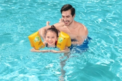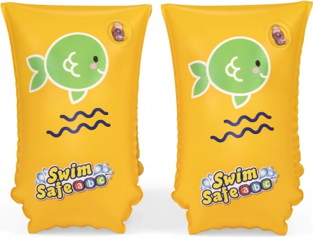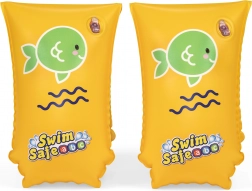 Datorită culorii galbene intense și motivului jucăuș cu peștișor verde, mânecele sunt foarte vizibile și copiii le poartă cu plăcere. Valvele practice facilitează umflarea și dezumflarea rapidă, iar dimensiunea compactă înseamnă că le puteți lua ușor în vacanță, la piscină sau la lac.