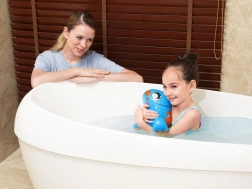 Datorită construcției gonflabile, dinozaurul plutește în siguranță la suprafață și transformă baia într-un joc distractiv.
