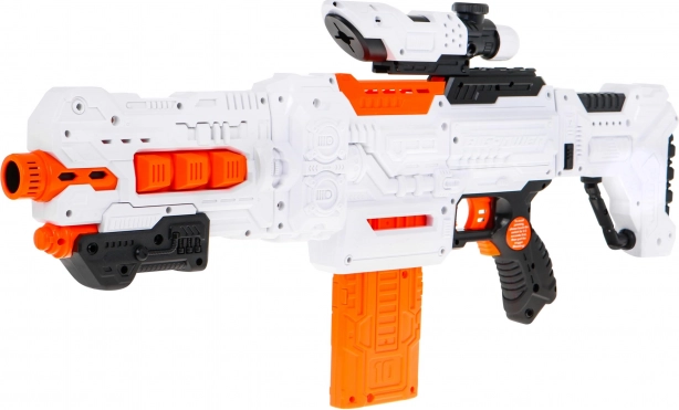 Blaster electric distractiv pentru copii de la 8 ani oferă tragere semi-automată, vizor precis și două încărcătoare pentru săgeți moi din spumă. Datorită manipulării ușoare, patului reglabil și țeavii detașabile, copiii pot ajusta lungimea jucăriei. În set sunt incluse 48 de săgeți din spumă sigure, ochelari de protecție și ținte sub formă de doze pentru distracție și mai mare.