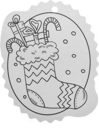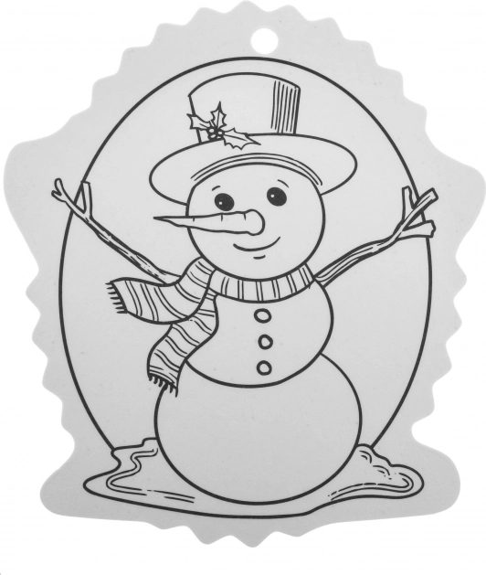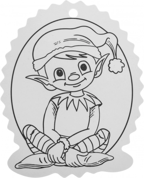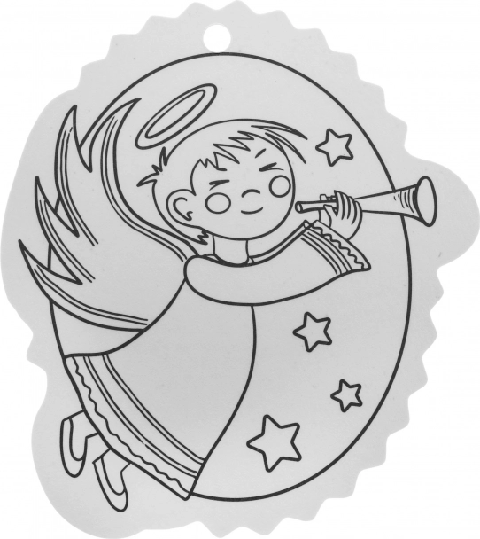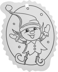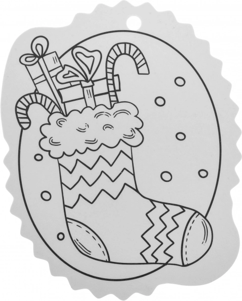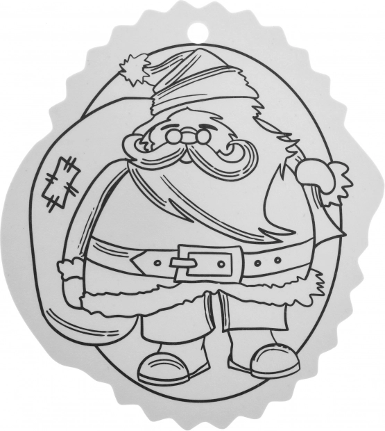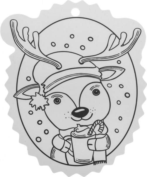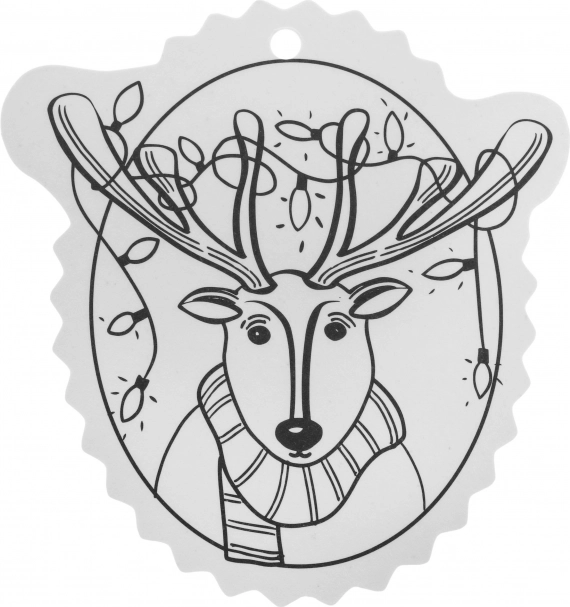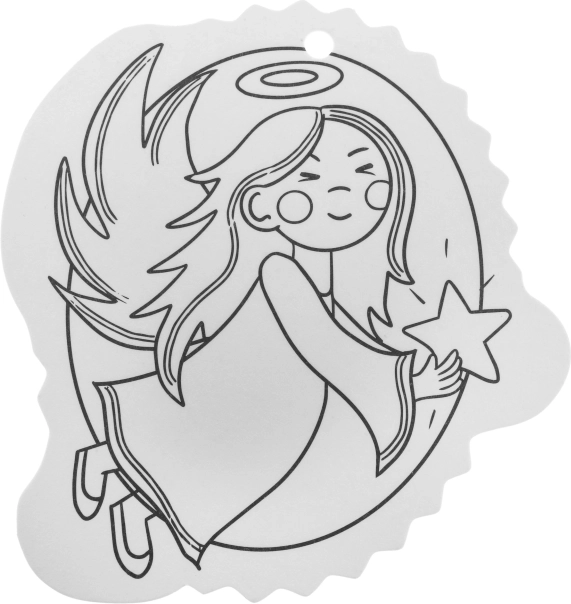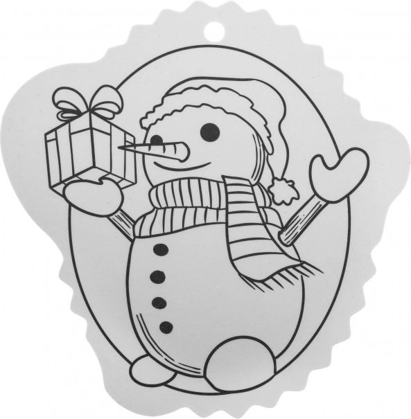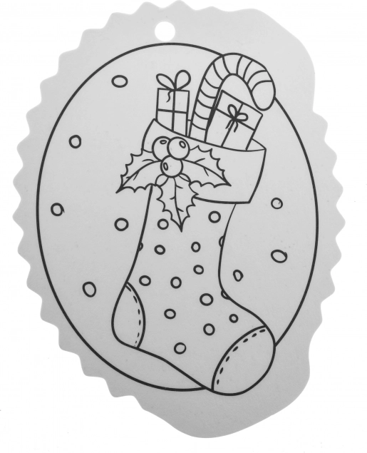 Contururile alb-negru facilitează colorarea, iar orificiul din partea superioară permite agățarea rapidă în brad sau pe cadou.
