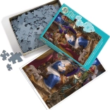 Puzzle-ul de familie COBBLE HILL oferă o soluție ingenioasă pentru asamblare în comun: o parte a imaginii conține piese mari potrivite pentru copiii mai mici, a doua parte piese mici pentru adulți și asamblori mai experimentați, iar în centru veți găsi piese medii pentru o asamblare confortabilă a copiilor mai mari și a bunicilor. Motivul Noaptea Sfântă oferă o atmosferă liniștită și detalii frumoase.