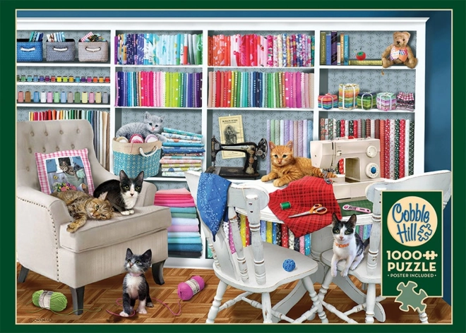 Descoperiți frumusețea unui puzzle cu tema unui atelier de cusut: puzzle-ul COBBLE HILL cu 1000 de piese aduce o ștanțare neconvențională cu piese de forme neobișnuite, oferind o dificultate mai ridicată și o provocare plăcută. Este inclusă și o imagine model pentru o asamblare mai confortabilă.