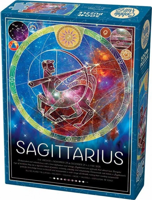 Puzzle-urile COBBLE HILL se remarcă printr-o matriță de producție unică: piesele nu au o grilă clasică, colțurile și marginile nu sunt pe aceeași axă și vin în forme neconvenționale. Asta aduce o provocare distractivă tuturor pasionaților de puzzle, iar frumosul motiv motivațional Săgetător din horoscop oferă un rezultat decorativ după asamblare.
