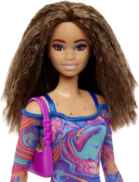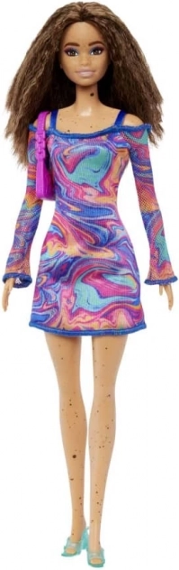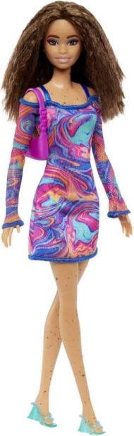 Păpușile Barbie Fashionistas aduc o perspectivă proaspătă asupra modei, stilului și individualității. Această păpușă cucerește cu un vârtej de nuanțe corai, roz și albastre pe rochia cu model marmorant curcubeu, mâneci din plasă și accesorii la modă. Ideală pentru copiii cărora le place să combine ținute și să creeze propriile povești.