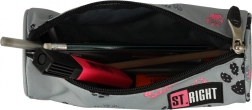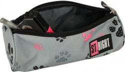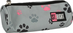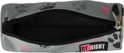 În interior poți depozita comod creioane, pixuri, marcatoare, riglă, compas și creioane colorate. Penarul poate fi folosit și ca husă universală pentru mărunțișuri sau materiale de artă. Culoarea gri minimalistă cu motiv de lăbuțe va bucura orice iubitor de prieteni patrupezi.
