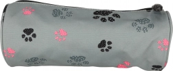 Acest penar gri tip tub, cu un model drăguț de lăbuțe roz și negre, este un accesoriu practic și la modă, pentru școală și acasă. Datorită materialului textil rezistent și fermoarului de calitate, îți păstrează instrumentele de scris în siguranță laolaltă și, în același timp, ocupă puțin spațiu în rucsac.