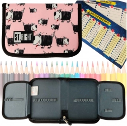 Organizarea internă, cu bucle elastice și compartimente, ajută la menținerea ordinii și împiedică mișcarea liberă a creioanelor și creioanelor colorate. Un bonus practic este tabelul înmulțirii și orarul săptămânal, care le simplifică elevilor pregătirea pentru școală.