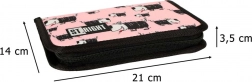 Penar școlar practic cu două clapete, în design roz cu câini. Oferă organizarea clară a rechizitelor, este închis cu fermoar și are cursă de fermoar cu buclă ergonomică. În interior găsești compartimente și prinderi elastice pentru markere, creioane și riglă; sunt incluse și tabelul înmulțirii și orarul.