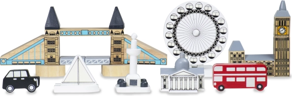 Jucăriile sunt din lemn durabil și oferă astfel nu doar o experiență estetică, dar și tactilă în timpul jocului. Sunt realizate în mod realist, colorat, ceea ce permite copiilor să învețe despre clădirile faimoase din Londra.