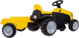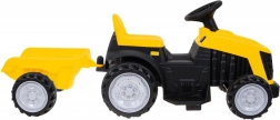 Acest tractor pentru copii cu remorcă detașabilă, în combinație galben-negru, stimulează imaginația și abilitățile motorii ale celor mici. Datorită construcției ușoare, dar rezistente, din plastic și roților mari, copiii se bucură de o plimbare stabilă în grădină sau în curte.