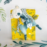 Această koala pufoasă, Yoca, însoțește bebelușul din primele zile și se asigură că suzeta este mereu la îndemână. Materialul catifelat oferă o senzație de siguranță și confort atât în timpul odihnei, cât și la adormire, în timp ce păturica ușoară încălzește delicat.