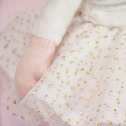 Păpușa balerină Anais este o adevărată mică balerină, ideală pentru joacă și învățarea primelor mișcări de balet. Este îmbrăcată într-o frumoasă fustă tutu albă cu sclipici aurii fini și pantofi de balet albi, ceea ce o face partenerul ideal pentru orice mică balerină.