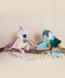 Această jucărie moale nu este doar un prieten de încredere pentru bebelușul tău, ci sprijină și dezvoltarea simțurilor și motricității fine. Aripile, coada și capul sunt decorate cu panglici colorate, pe care copii le pot mesteca pentru a le dezvolta sensibilitatea tactilă.