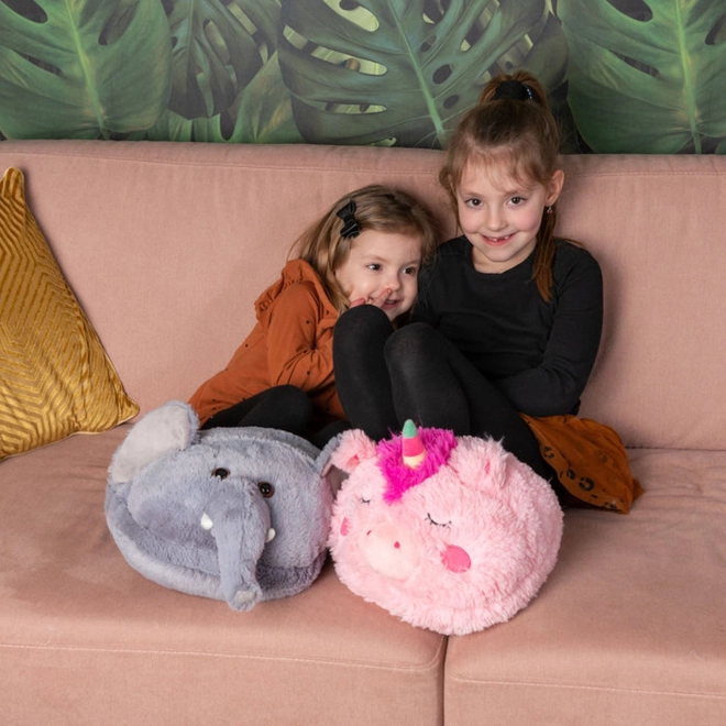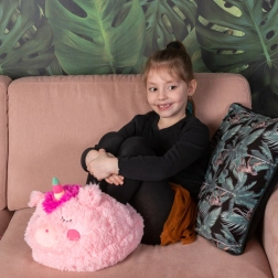 Unicornul roz stilat, cu corn colorat, încântă de la prima vedere și face mai cozy orice living sau cameră de copii.