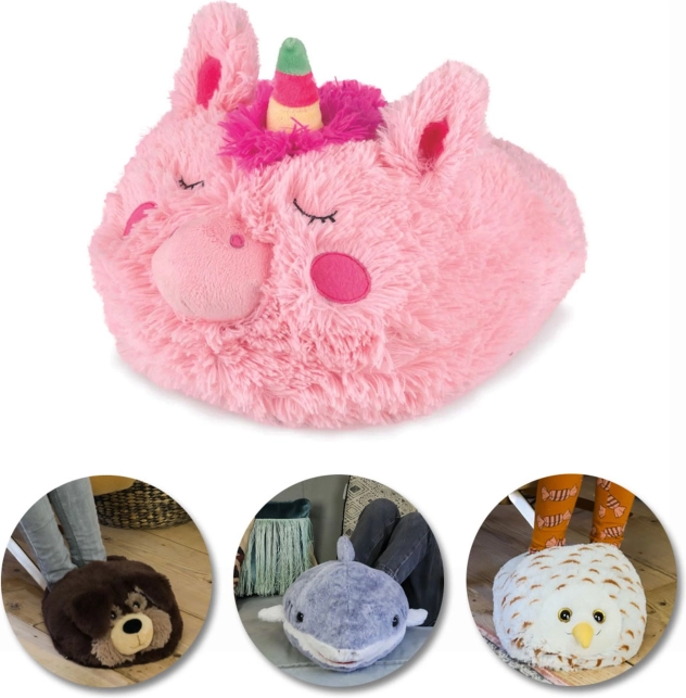 Intră în lumea confortului cu papucul din pluș în formă de unicorn, care îți încălzește tălpile în momentele de odihnă. Datorită umpluturii fine și interiorului confortabil, îți păstrează picioarele plăcut calde fără risc de arsură. Perfect pentru vizionare TV, lectură sau jocuri.