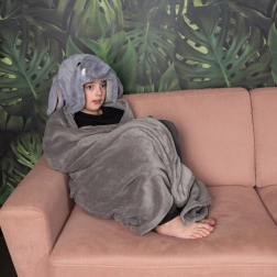 Această pătură călduroasă cu glugă COZY NOXXIEZ Elefant este concepută pentru confort maxim și distracția copiilor. Materialul fleece ultra moale încălzește plăcut și este fin la atingere, iar gluga cu urechiușe și trompă transformă simplul cuibărit într-o aventură magică. Buzunarele de colț pentru mâini, cu motiv de lăbuțe, păstrează degetele calde și oferă siguranță.