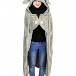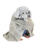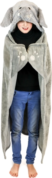 Gluga cu urechiușe și trompă, împreună cu buzunarele de la colțuri, transformă pătura într-un „costum” jucăuș de animal și păstrează mâinile calde.