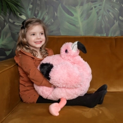 Acest flamingo cu o culoare roz strălucitoare și un aspect adorabil încântă orice copil.