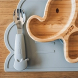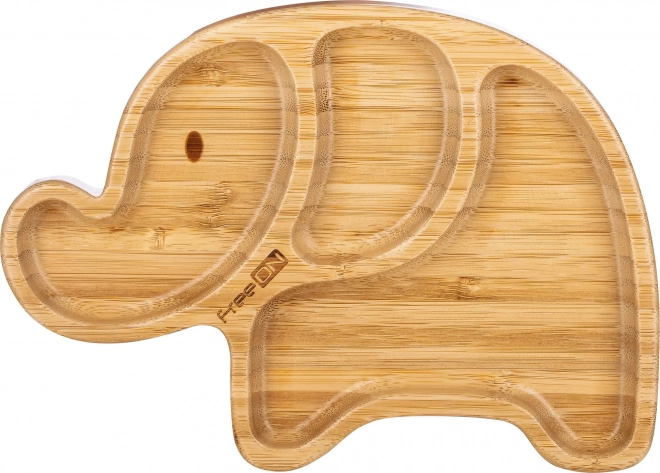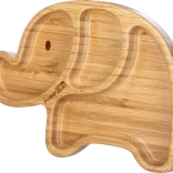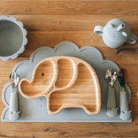 Farfurie stilată pentru copii din 100% bambus, în formă de elefant, cu ventuză detașabilă pentru fixare fermă pe masă. Are 3 compartimente practice pentru separarea alimentelor, este fără BPA, PVC, ftalați și melamină și oferă curățare ușoară și rezistență pentru utilizare zilnică.