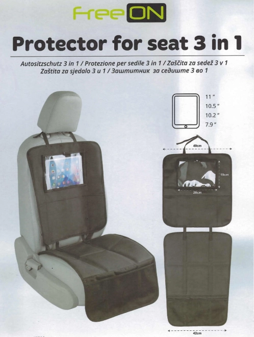 Scaunul auto cu protecție și organizator 3 în 1 este conceput pentru a oferi protecție și practicitate completă. Protejează scaunul vehiculului împotriva urmelor și murdăriei datorită materialului rezistent, care se curăță ușor.