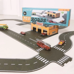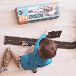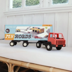 Setul de start MyRoads oferă copiilor posibilități nelimitate de construire a traseelor, până la o lungime de 700 cm. Piesele din material durabil pe bază de lemn reciclat se îmbină lin și își păstrează forma, astfel încât copiii pot crea orașe, circuite de curse și noduri rutiere. Aspectul retro atemporal îi va încânta pe micii și marii constructori.