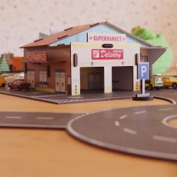 - Notă: materialul natural poate prezenta mici variații de culoare; mașinuțele și drumurile nu sunt incluse în pachet