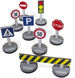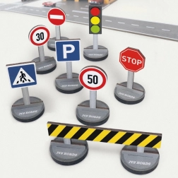 - Conținutul setului: 8 indicatoare rutiere și 9 postamente (în total 17 piese)