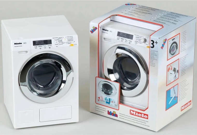 Mașina de spălat pentru copii MIELE de la brandul KLEIN oferă celor mici distracție autentică în imitarea adulților. Oferă tambur rotativ, 4 cicluri de spălare, indicatore LED și posibilitatea de spălare cu apă sau fără apă. Datorită efectelor sonore și sertarului funcțional pentru apă, jocul devine și mai realist și sigur pentru copiii de la 3 ani.