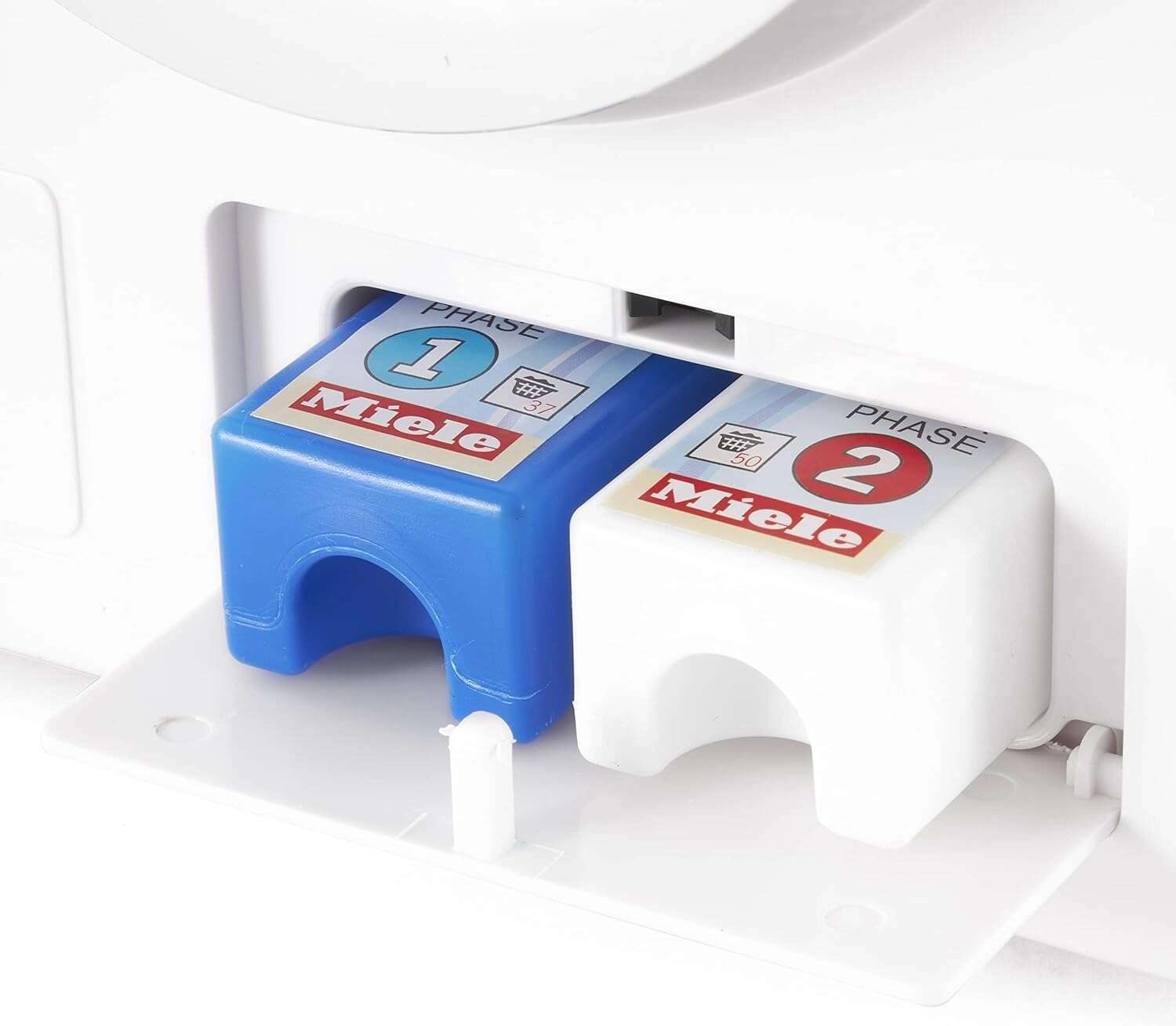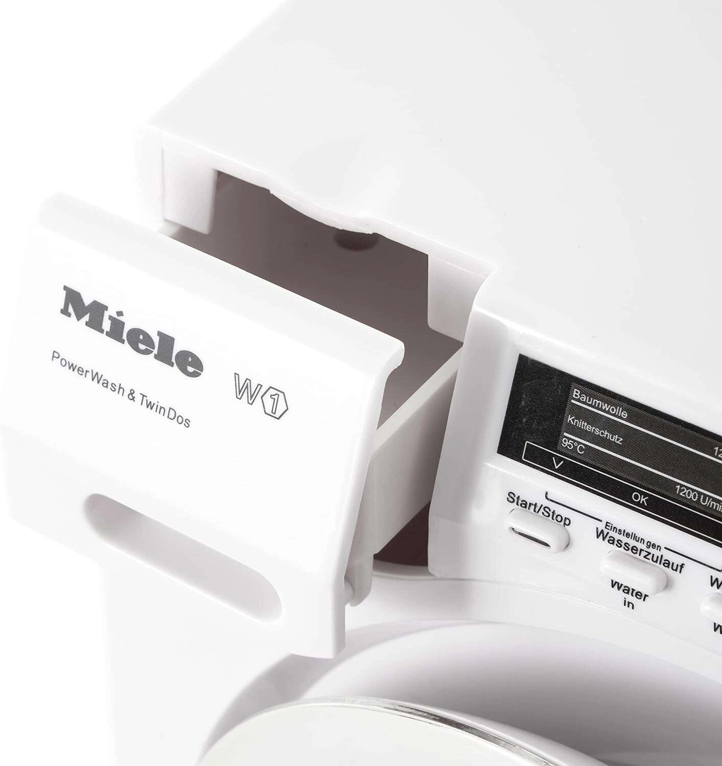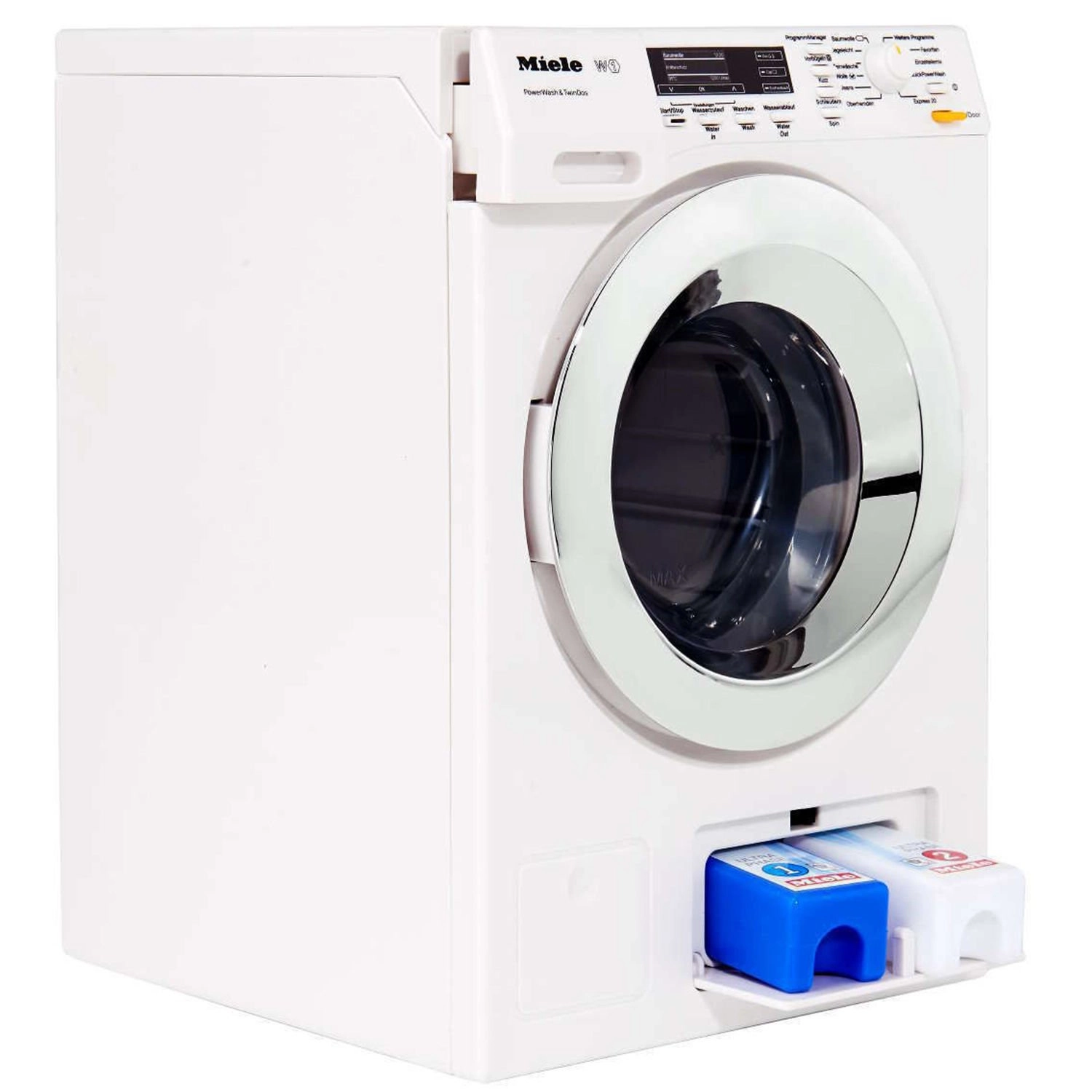 Această mașină de spălat pentru copii licențiată MIELE imită fidel un aparat real și îi motivează pe cei mici să-și dezvolte imaginația și motricitatea fină. Datorită celor patru programe realiste – umplere, spălare, golire și stoarcere – micii ajutori se vor bucura de multă distracție. Indicatorul LED și sunetele reale ale fiecărei faze transformă fiecare joacă într-o experiență.