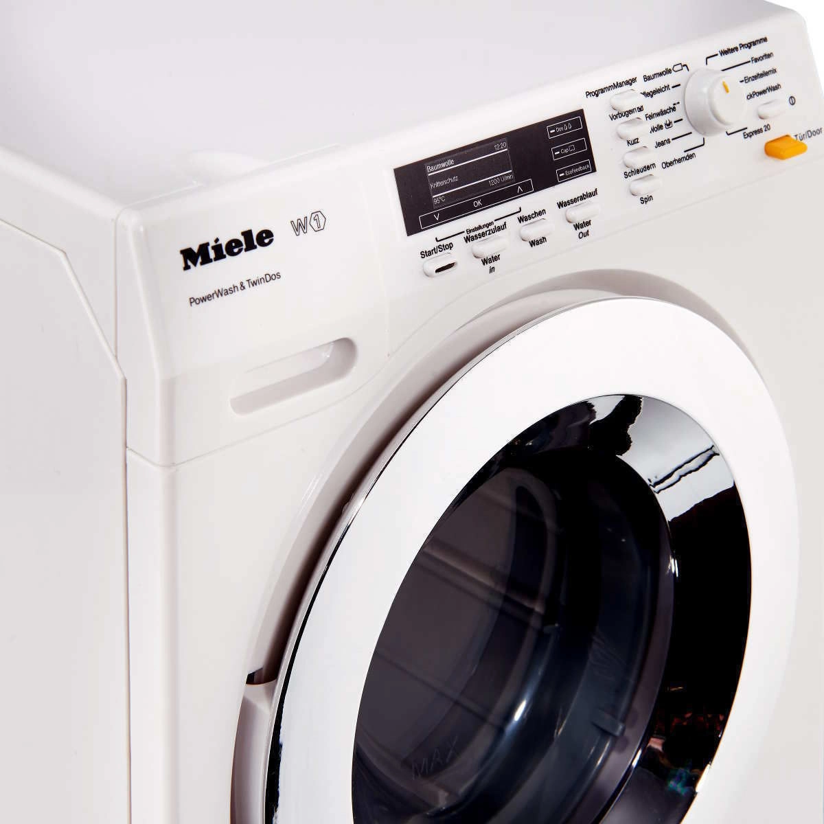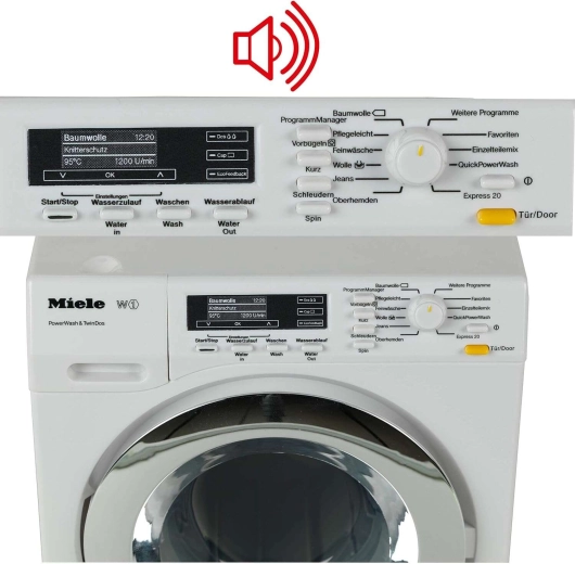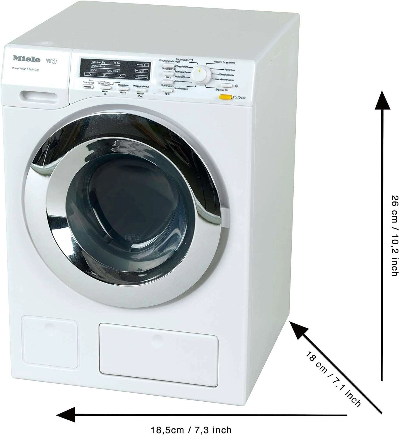 Această mașină de spălat pentru copii licențiată MIELE imită fidel un aparat real și îi motivează pe cei mici să-și dezvolte imaginația și motricitatea fină. Datorită celor patru programe realiste – umplere, spălare, golire și stoarcere – micii ajutori se vor bucura de multă distracție. Indicatorul LED și sunetele reale ale fiecărei faze transformă fiecare joacă într-o experiență.