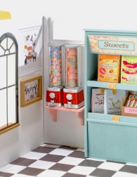 Scufundă-te în lumea fanteziei și a culorilor cu căsuța miniaturală 3D DIY cofetăria CANDY HOUSE. Ferestre transparente, uși care se deschid și o mulțime de detalii dulci creează o scenă realistă care prinde viață în mâinile tale. Piesele sunt decupate cu laser și proiectate pentru o fixare sigură și stabilă, astfel că te poți concentra pe distracție și creativitate.