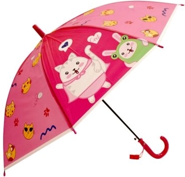 Ai la dispoziție mai multe motive – pisicuțe drăguțe, broscuțe vesele, dinozauri colorați sau animale polare. Fiecare variantă are un mâner curbat asortat cromatic pentru o prindere sigură și confortabilă. Structura rezistentă a umbrelei protejează de ploaie și transformă vremea mohorâtă în distracție.