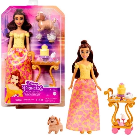 Prințesa Disney Belle și prietenii ei te invită la un ceai relaxant de după-amiază la palat! Păpușa Belle arată minunat în ținuta ei preferată de culoare galbenă, iar setul include și un cărucior pentru ceaiul de după-amiază, figurine ale prietenilor și mâncare. Fanii își pot reinterpreta momentele preferate din film sau pot inventa propriile povești de neuitat. Păpușa nu poate sta în picioare fără sprijin. Culorile și elementele decorative pot varia.