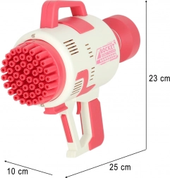 Bucurați-i pe copii și adulți cu un flux nesfârșit de bule. Acest generator de bule roz, tip rachetă, produce multe bule la o singură apăsare a trăgaciului – fără suflat și fără efort. Construcția robustă din plastic și mânerul superior practic facilitează transportul și joaca atât afară, cât și în casă.