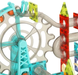Magneții puternici mențin construcțiile stabil unite, iar tuburile transparente le permit copiilor să urmărească fiecare mișcare a bilelor. Construcția este rapidă, stabilă și distractivă.