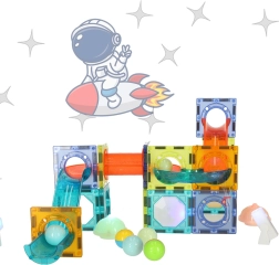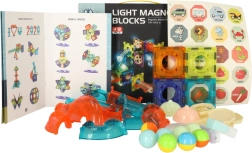 Construiți pentru copii un univers fascinant al biluțelor, plin de lumină și mișcare! Acest set de piese magnetice combină îmbinarea ușoară cu elemente transparente și luminoase pentru un tobogan spectaculos pentru bile, care dezvoltă motricitatea fină, imaginația spațială și gândirea logică. Biluțele luminoase și reflectoarele transformă fiecare cursă într-un show de lumini captivant – chiar și pe întuneric.