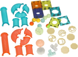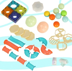 Setul permite construcții versatile în 2D și 3D: de la forme simple până la piste complexe. Pătratele magnetice asigură o structură stabilă, iar tuburile și tunelurile se atașează ușor „prin clic”. Datorită pieselor și biluțelor luminoase, fiecare coborâre devine un spectacol distractiv și vizual atrăgător.