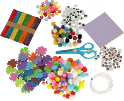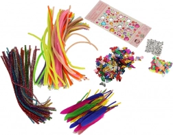 Set complet de materiale, de la sârmulițe și pompoane la autocolante și mărgele, permițând copiilor să realizeze proiecte variate fără a cumpăra accesorii suplimentare.