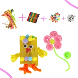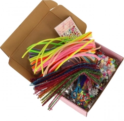 Acest set versatil oferă copiilor o gamă bogată de materiale pentru sute de idei originale – de la animăluțe din sârmulițe pufoase și felicitări decorate până la bijuterii proprii din mărgele. Datorită cantității mari și diversității componentelor, copiii își antrenează abilitățile de coordonare, precizia și răbdarea.