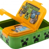 Faceți-le copiilor o bucurie cu o cutie de gustări stilată cu motive din jocul îndrăgit MINECRAFT. Datorită celor trei compartimente separate, veți separa ușor pâinea, fructele și micile gustări, astfel încât totul rămâne proaspăt și ordonat. Dimensiunile compacte încap comod în ghiozdan sau rucsăcel.