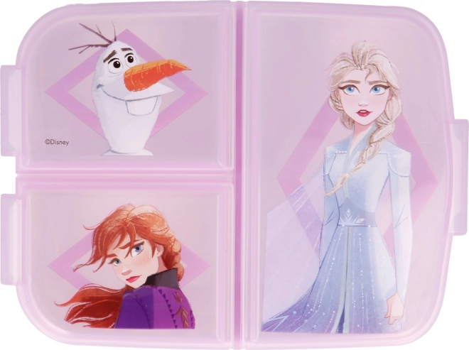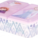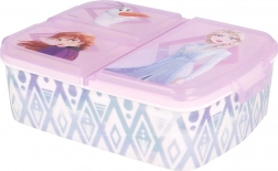 Cutie multi pentru gustare, originală și funcțională, care face fiecare zi mai plăcută pentru copii. Datorită celor trei compartimente separate, veți separa ușor fructele și legumele, sandvișul și micile delicii. Construcția rezistentă face față loviturilor și căderilor din utilizarea zilnică, iar motivele atrăgătoare din filmul Frozen 2 vor fi îndrăgite de copii.