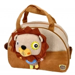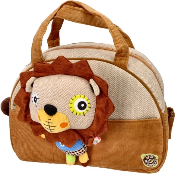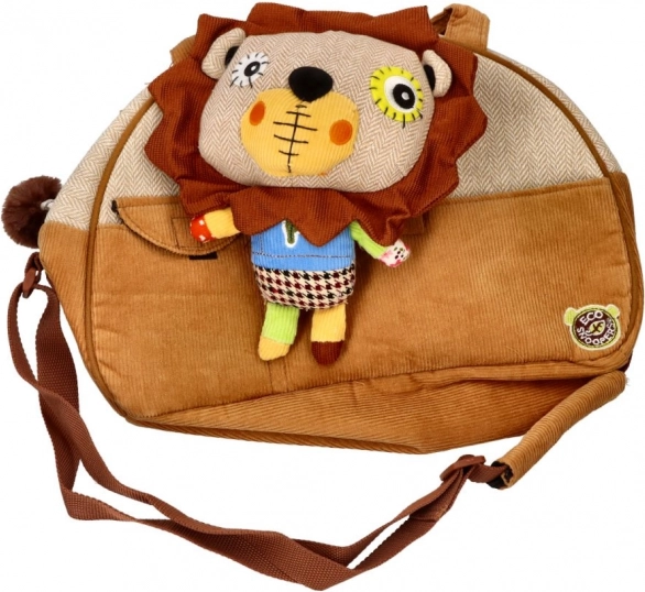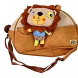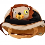 Jucăria de pluș în formă de leu, care face parte din geantă, oferă copiilor distracție și confort.