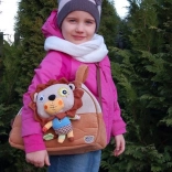 Spațiu pentru toate necesitățile: Geanta are două buzunare mici pe partea frontală cu arici și un compartiment principal spațios cu fermoar, unde se pot păstra toate comorile copilului. Partea inferioară a genții este întărită, asigurând stabilitate și întreținere ușoară.
