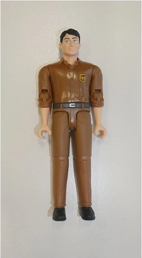 Figurină mobilă a șoferului UPS, potrivită ca accesoriu pentru modelele Bruder. Bărbat în uniformă tipică de culoare maro. Fabricat în Germania, din materiale de calitate. Principalele caracteristici: figurină mobilă, fabricat în Germania