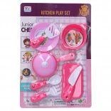 Faceți gătitul distractiv pentru copiii dumneavoastră cu acest set de vase roz fermecător. Setul este ideal pentru dezvoltarea fanteziei și creativității copiilor în timpul jocului în bucătărie. Pregătiți o mică surpriză pentru prietenii dumneavoastră și bucurați-vă împreună de ore de distracție!